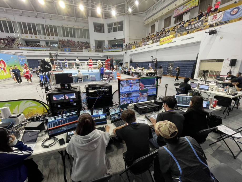 體育系人才濟濟,投入傳播也很積極,學生除了來傳院雙主修輔系外,實際早就在做全國性賽事轉播。傳播學院也重視運動傳播,有知名的緯來電視台的副總文大培校友授課。但是體育系的同學已經可以左右開弓,不論事賽台或是轉播台都能兼顧。例如這次體育系有兩位武術專長的同學加入轉播,他們是體育系一年級的李羿辰和二年級黃鈺涵,有拳擊校隊的經驗,分別擔任導播及助理導播,所以對於賽事及鏡位方面能快速得上手,在運動賽事轉播中必要的慢動作回放剪輯,也能快速的選擇適合的回放機位及時機點。本次也有另一位拳擊隊二年級的劉微琳同學參與本次的轉播團隊,藉由拳擊場上的人脈協助現場導播的工作與拳擊協會及競賽裁判組做溝通,使得各項轉播資訊能無障礙的傳遞。