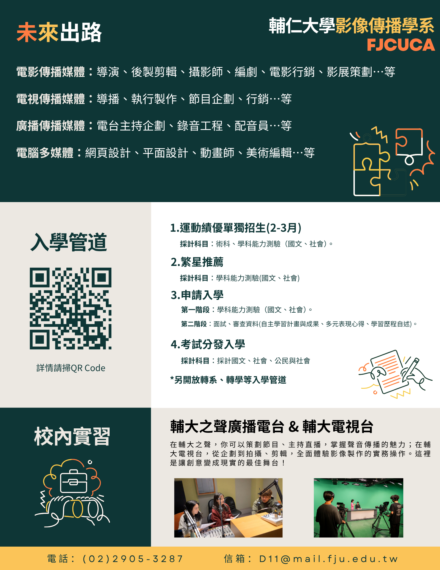 輔仁大學115學年度【運動績優單獨招生】訂於2026年2月3日上午10:00起至2月11日中午12:00止受理報名,報名簡章與方式請參閱本校招生資訊平台公告(請點此)。